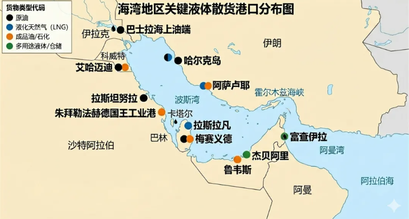 卡塔尔的拉斯拉凡(Ras Laffan)LNG码头是海湾地区最主要的LNG出口门户,也是全球最大的LNG出口枢纽,由卡塔尔能源运营。在伊朗空袭拉斯拉凡工业城后,卡塔尔目前暂停了LNG生产及输出。拉斯拉凡港有6个LNG泊位,其中4个可接卸全球最大级别LNG运输船。